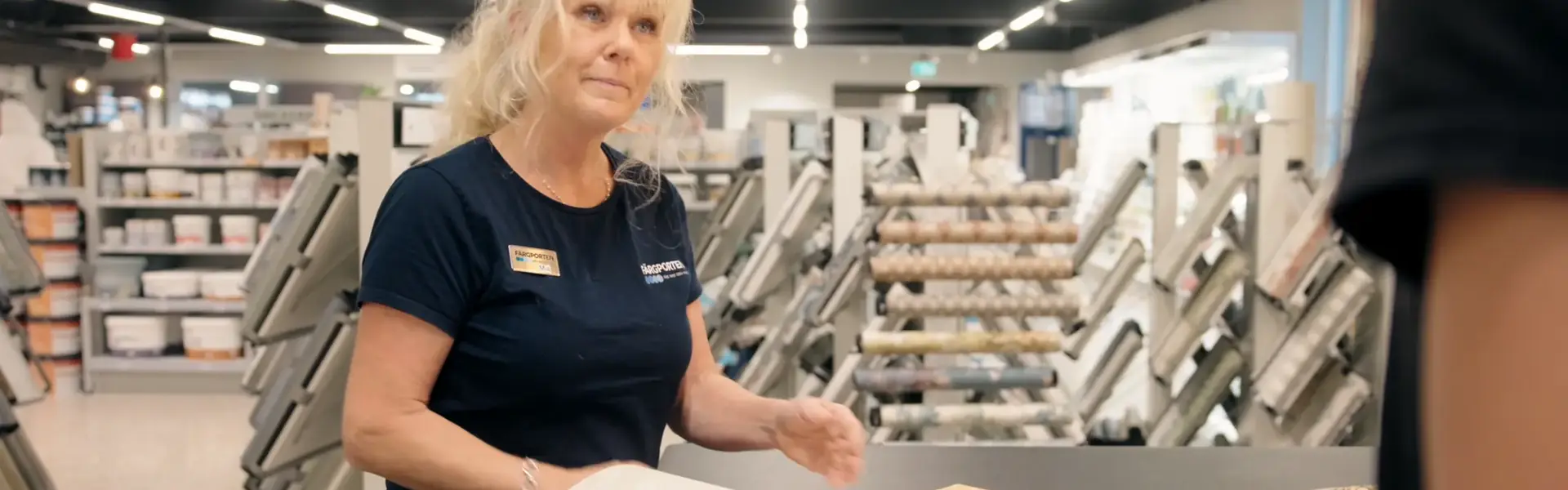 Vår personal har gedigen erfarenhet och kontinuerlig utbildning inom färg, material och inredning. Vi är stolta Alcro Studio Partner vilket innebär att vi har specialutbildning inom professionell färgsättning.